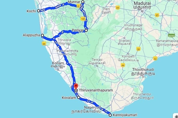 Cochin 2N, Munnar 2N, Periyar 1N, Alleppey 1N, Kovalam 2N