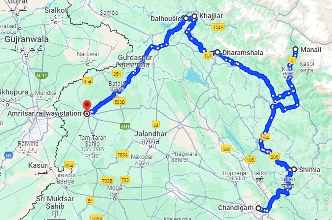 Chandigarh 1N, Shimla 2N, Manali 3N, Dharamshala 1N, Khajjiar 1N, Dalhousie 1N, Amritsar 1N