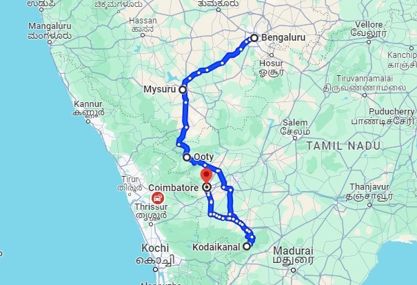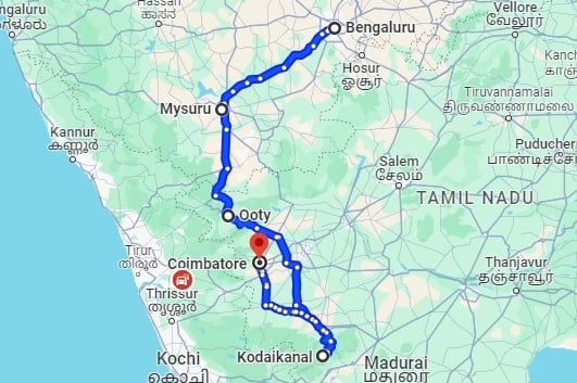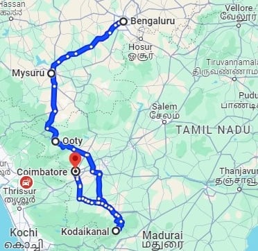 Bangalore 1N, Mysore 1N, Ooty 2N, Kodaikanal 2N